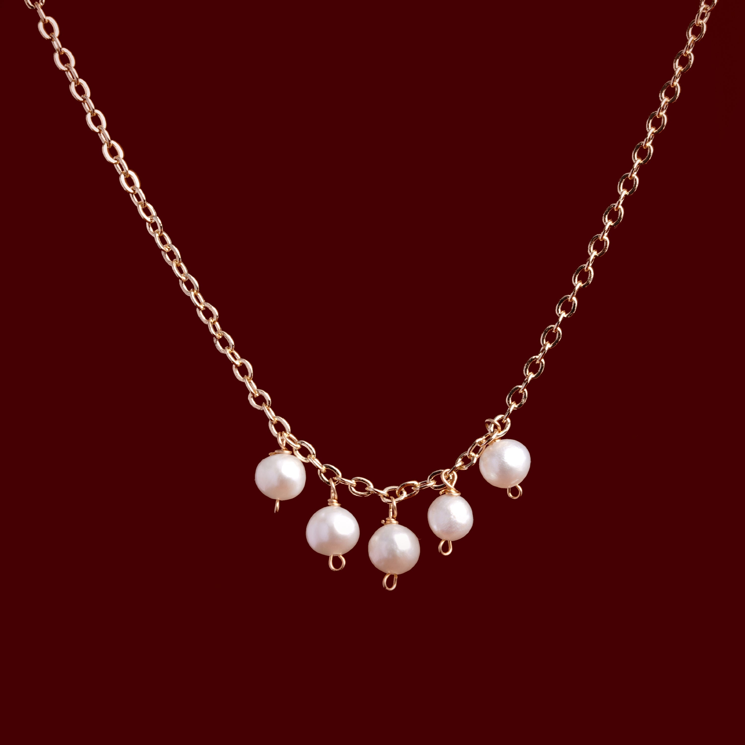 The Wave’s Melody Necklace features a fine gold-filled chain adorned with three white Mother of Pearl beads, each elegantly spaced to create balance and simplicity. The iridescent luster of the pearls adds a subtle glow, making this piece an effortless accent for both casual and formal ensembles.