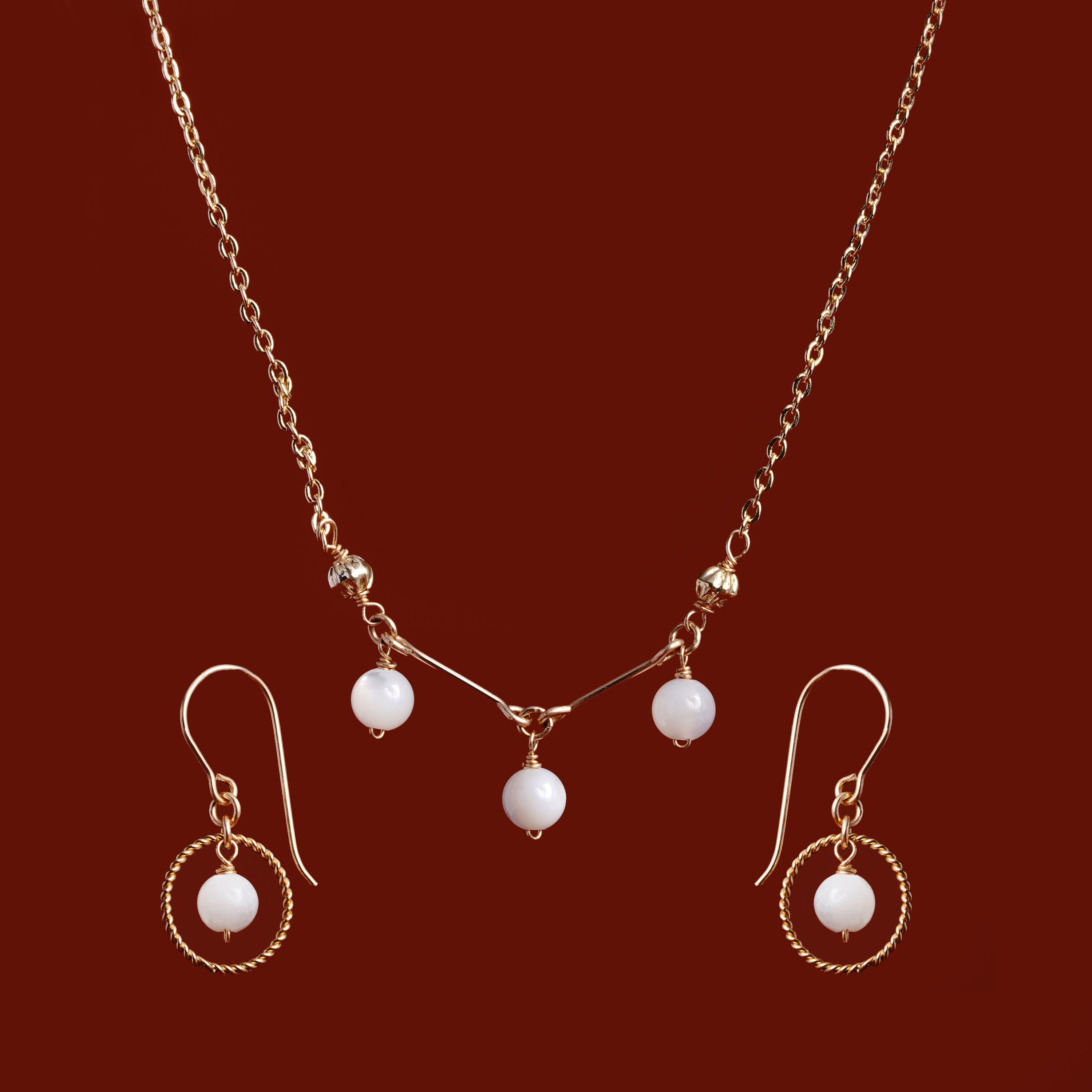 Wave's Melody Jewelry Set – Handcrafted 14KGF Necklace, Bracelet & Earrings with White Mother of Pearl | Ocean-Inspired Minimalist Jewelry | Made in Japan