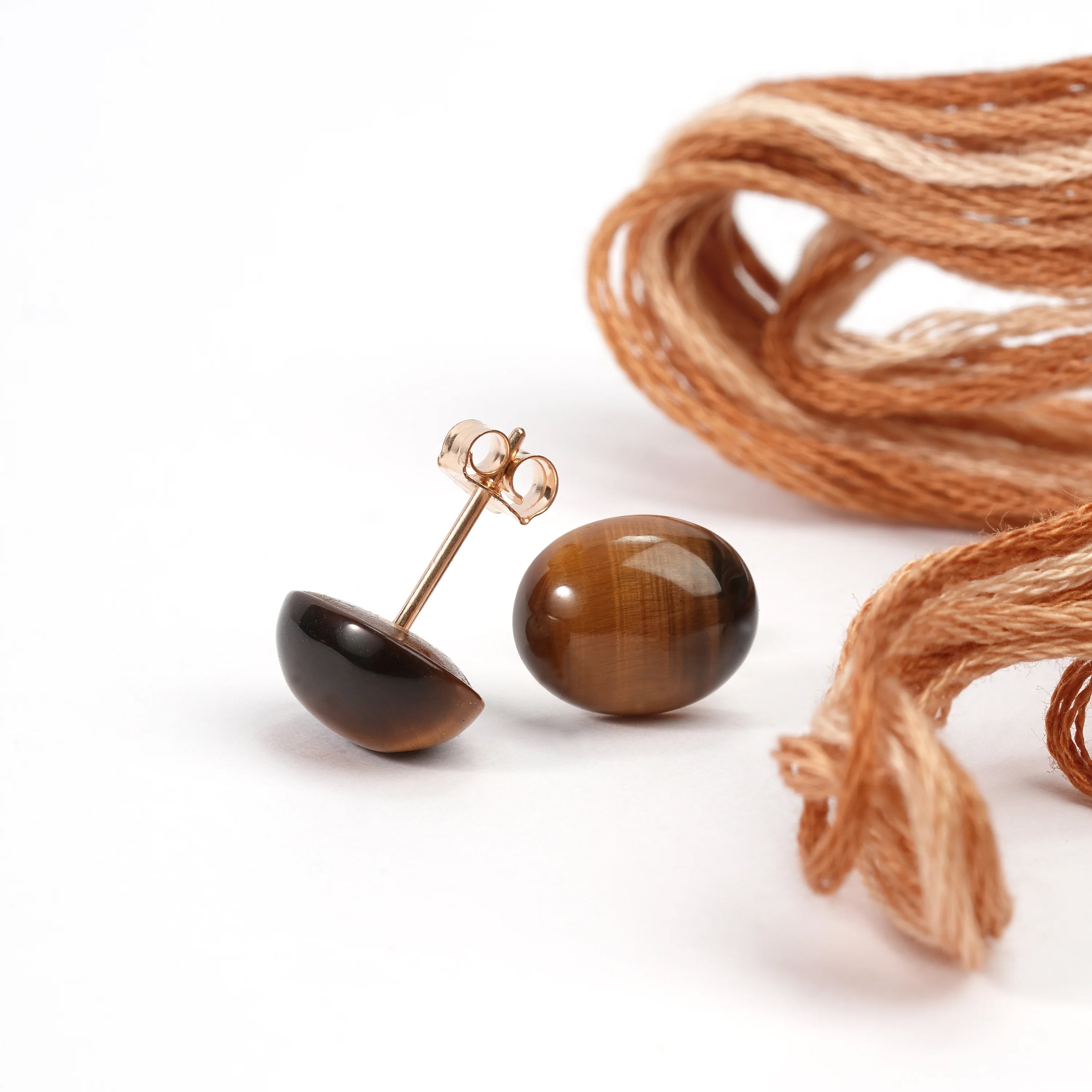 Honeyed Essence Studs – Handcrafted 14KGF Earrings with Yellow Tiger Eye (10x8mm Oval) | Elegant Gemstone Studs | Made in Japan
