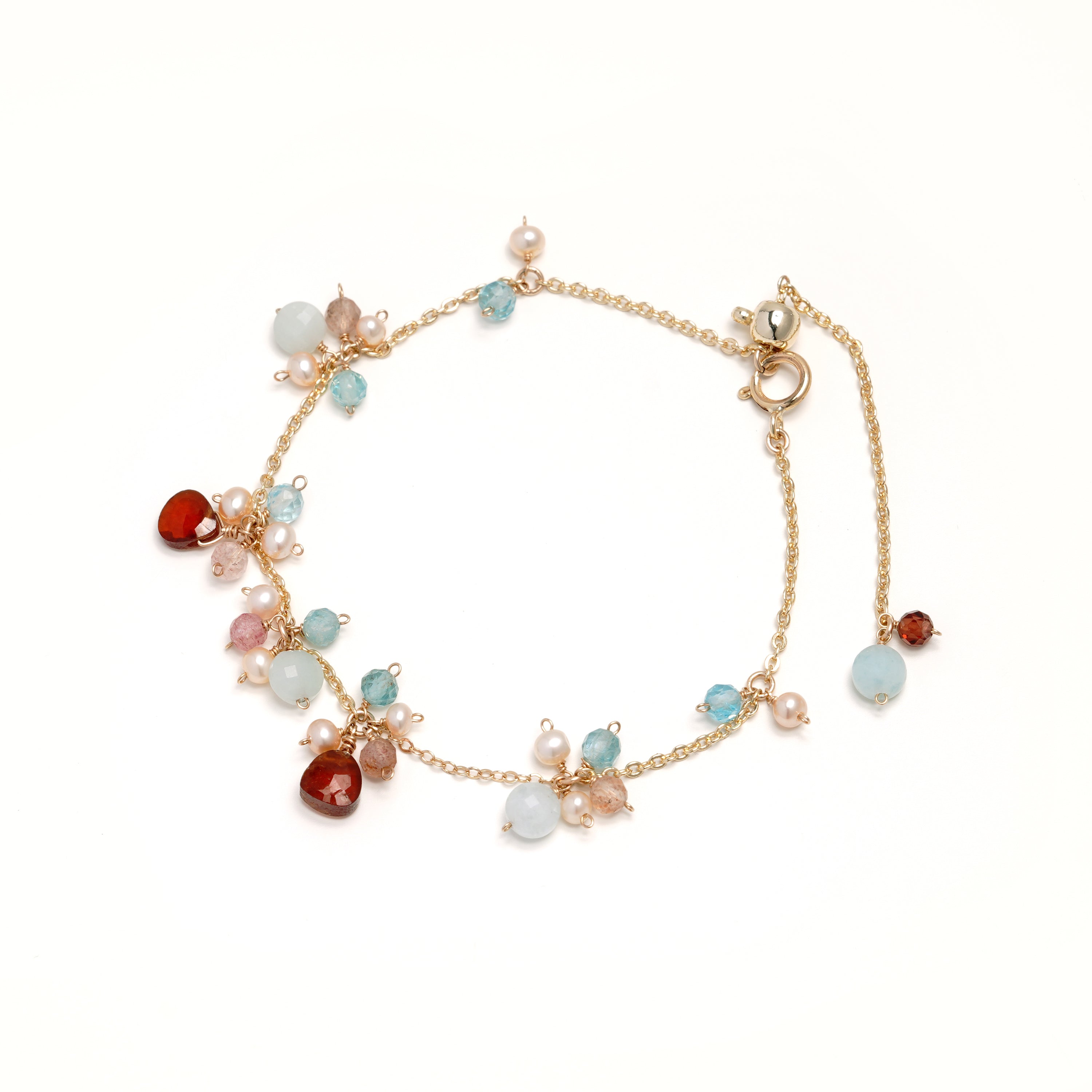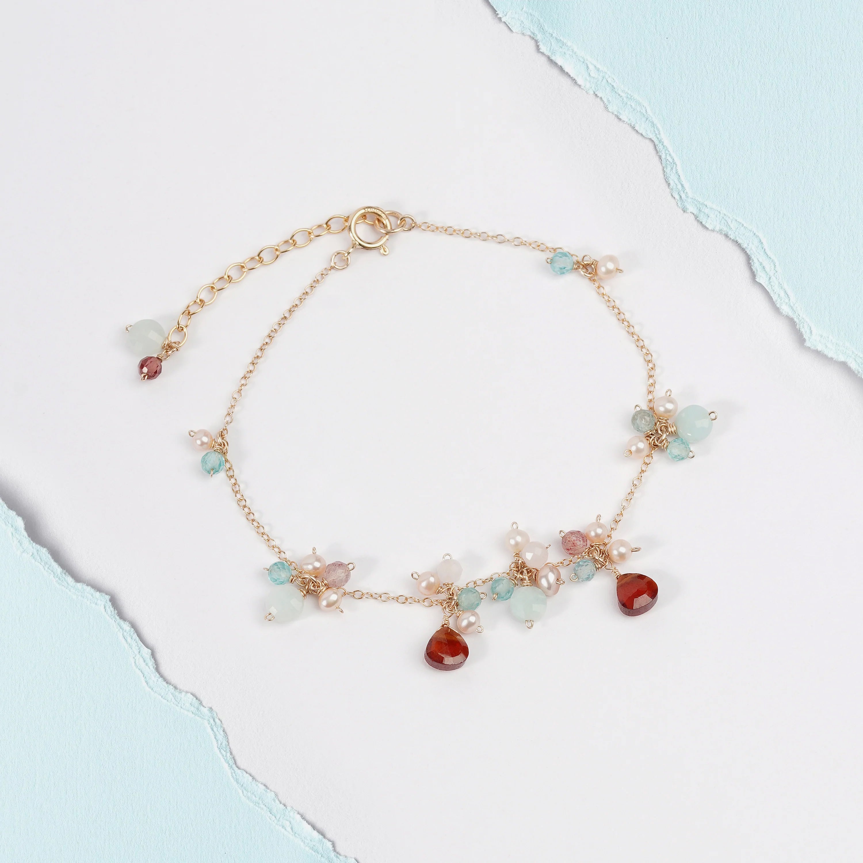 Ocean’s Lullaby Bracelet – Handcrafted 14KGF with Milky Aquamarine, Topaz, Garnet & Freshwater Pearl | Gemstone Bracelet | Made in Japan